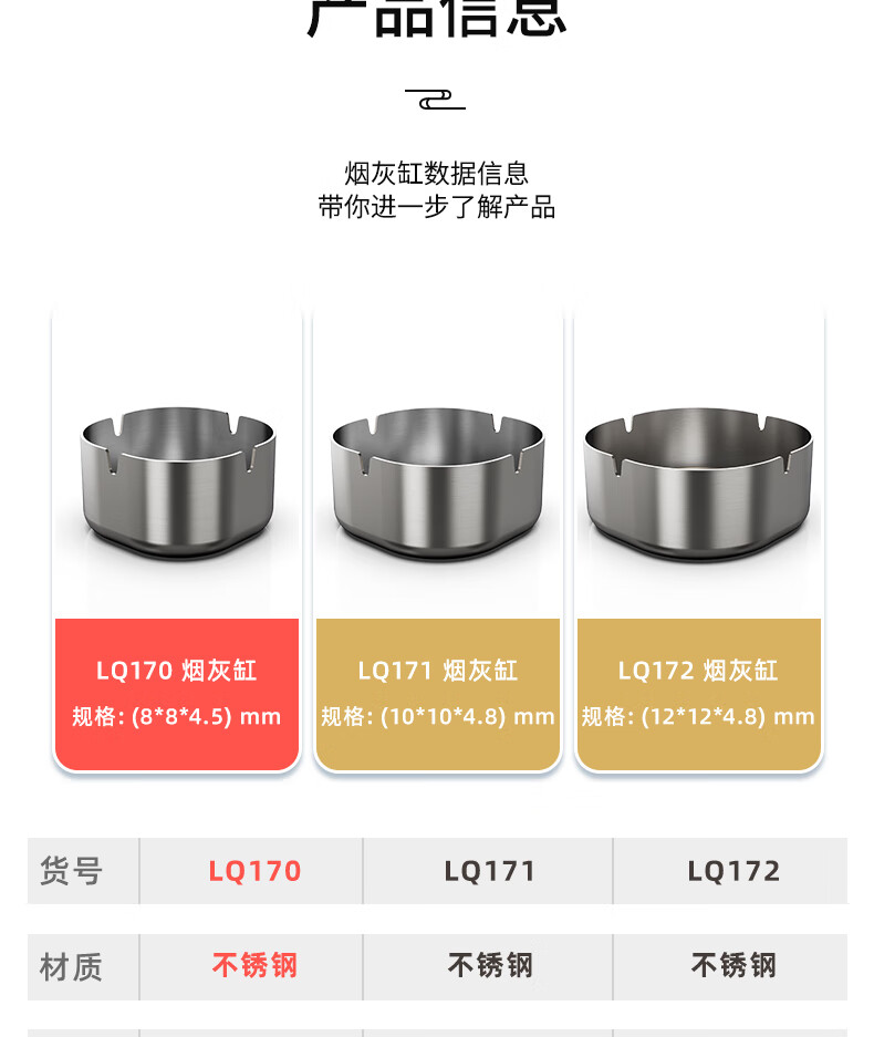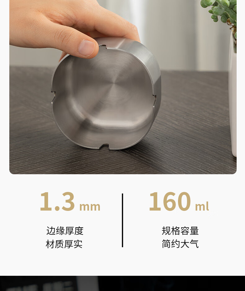 得力LQ170不銹鋼本色煙灰缸8cm(小號)