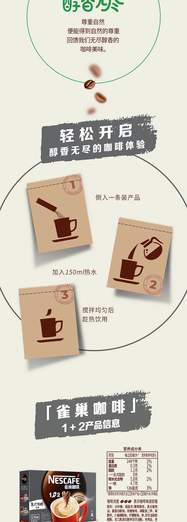 雀巢咖啡1+2奶香30條450g