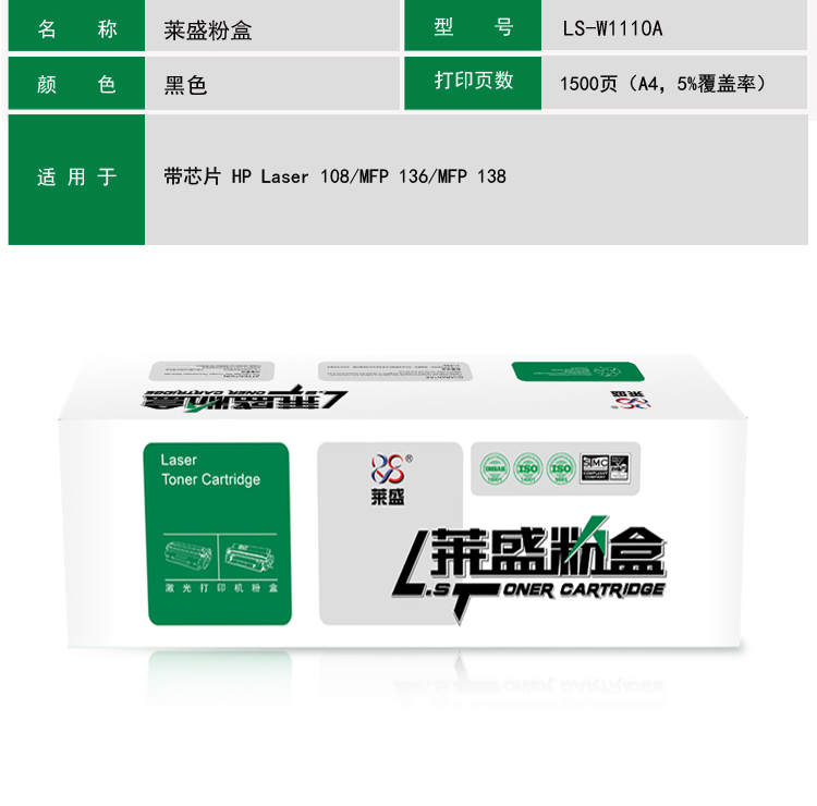 萊盛 LS-W1110A 帶芯片 黑色 適用于 惠普 HP Laser 108/MFP 136/MFP 138