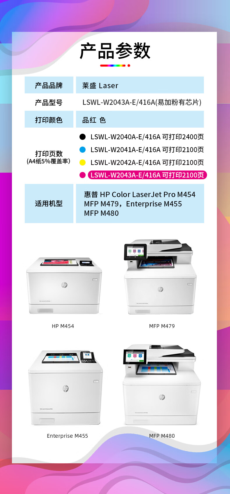 萊盛 LS-W2043A(416A)彩色激光打印機粉盒 品紅色 全新 有芯片 2.4K 12支/箱