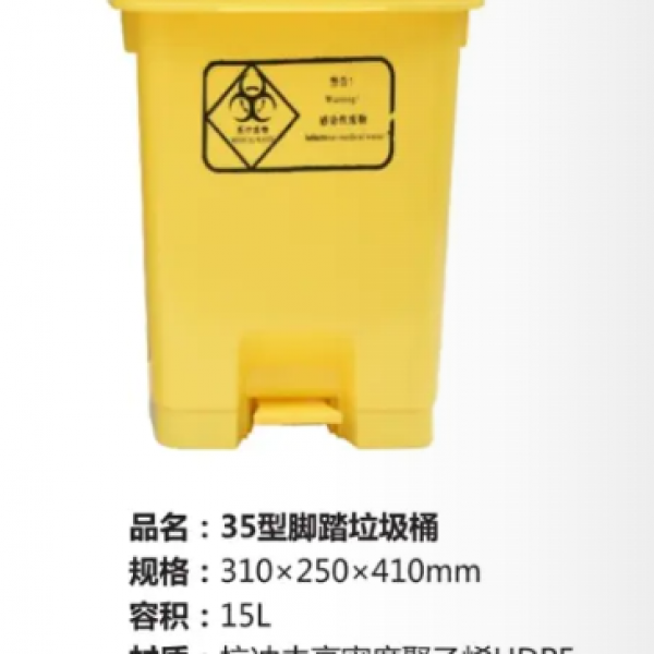 恒豐35型黃色腳踏垃圾桶313*252*413mm(15L)