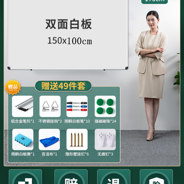 雨桐單面鋅背白板120*150cm(含白板架)