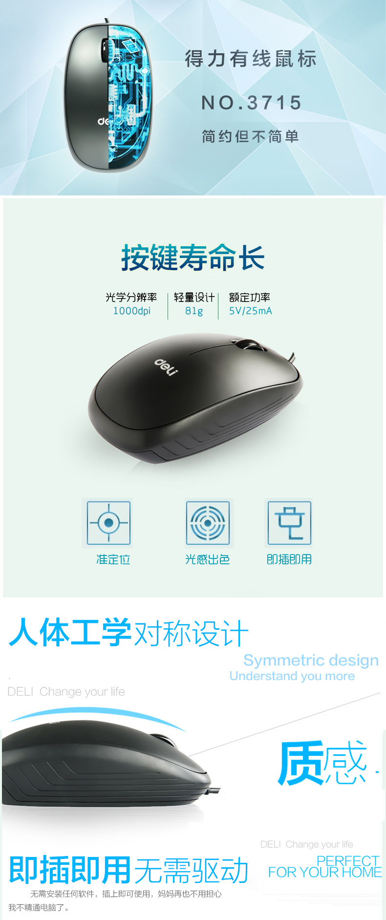 得力3715有線鼠標