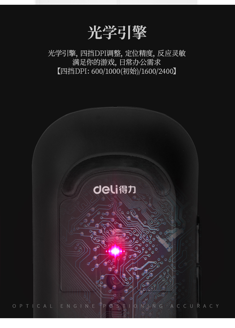 得力usb有線鼠標鼠標DPI三擋可調 LN200-B