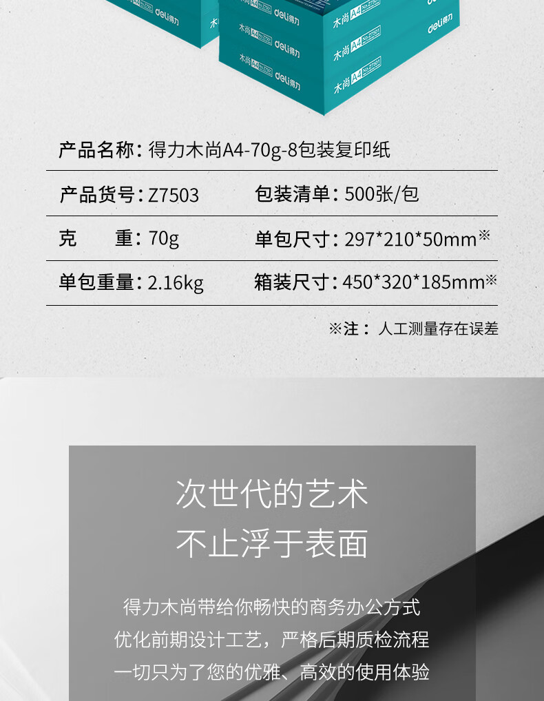 得力Z7503木尚復(fù)印紙A4-70g 8包/箱 4000張