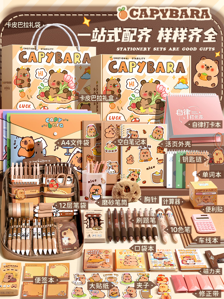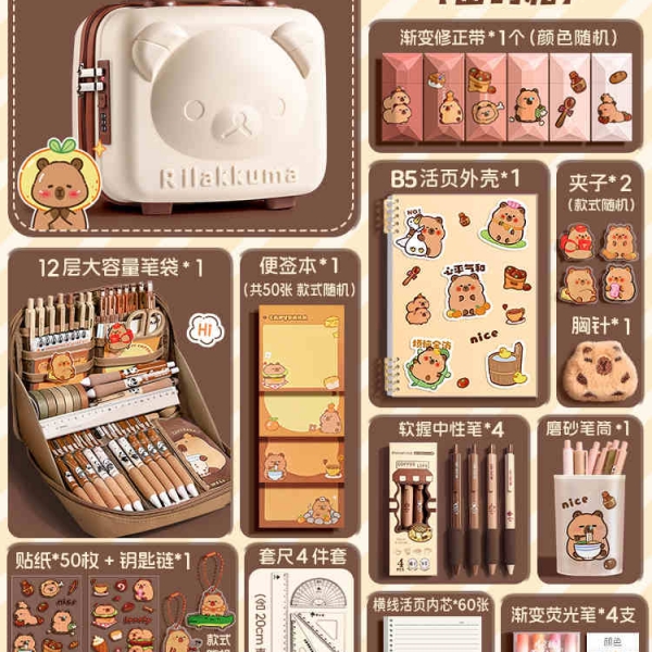 快力文WJL157卡皮巴拉文具套裝--基礎(chǔ)套裝(密碼箱)