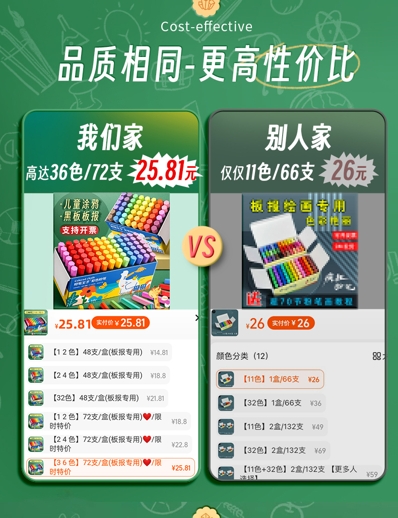 彩色粉筆72支-36色