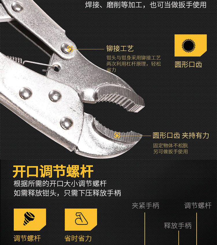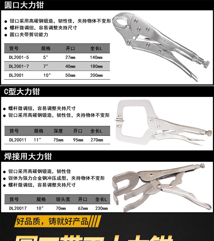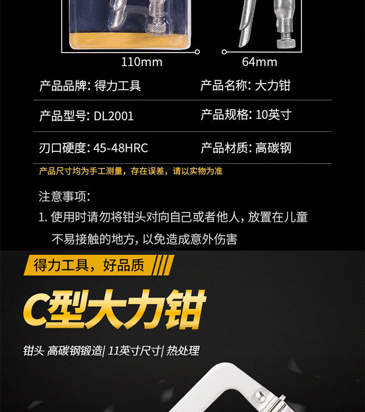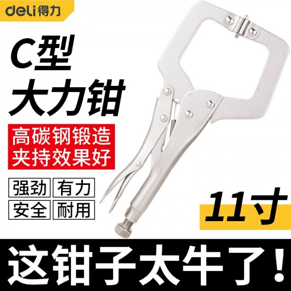 得力(deli)大力鉗固定頭 壺柄圓大力鉗 折邊折焊大力鉗 固定頭C型11寸 DL20011