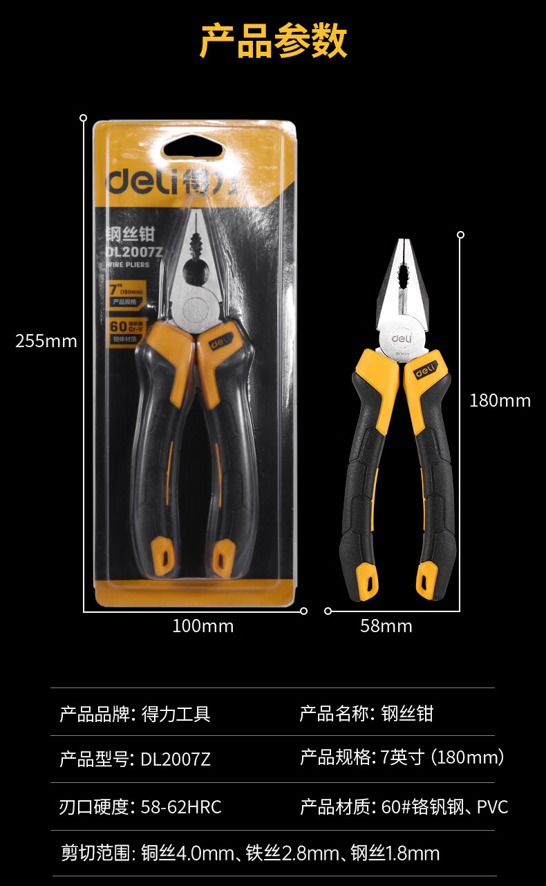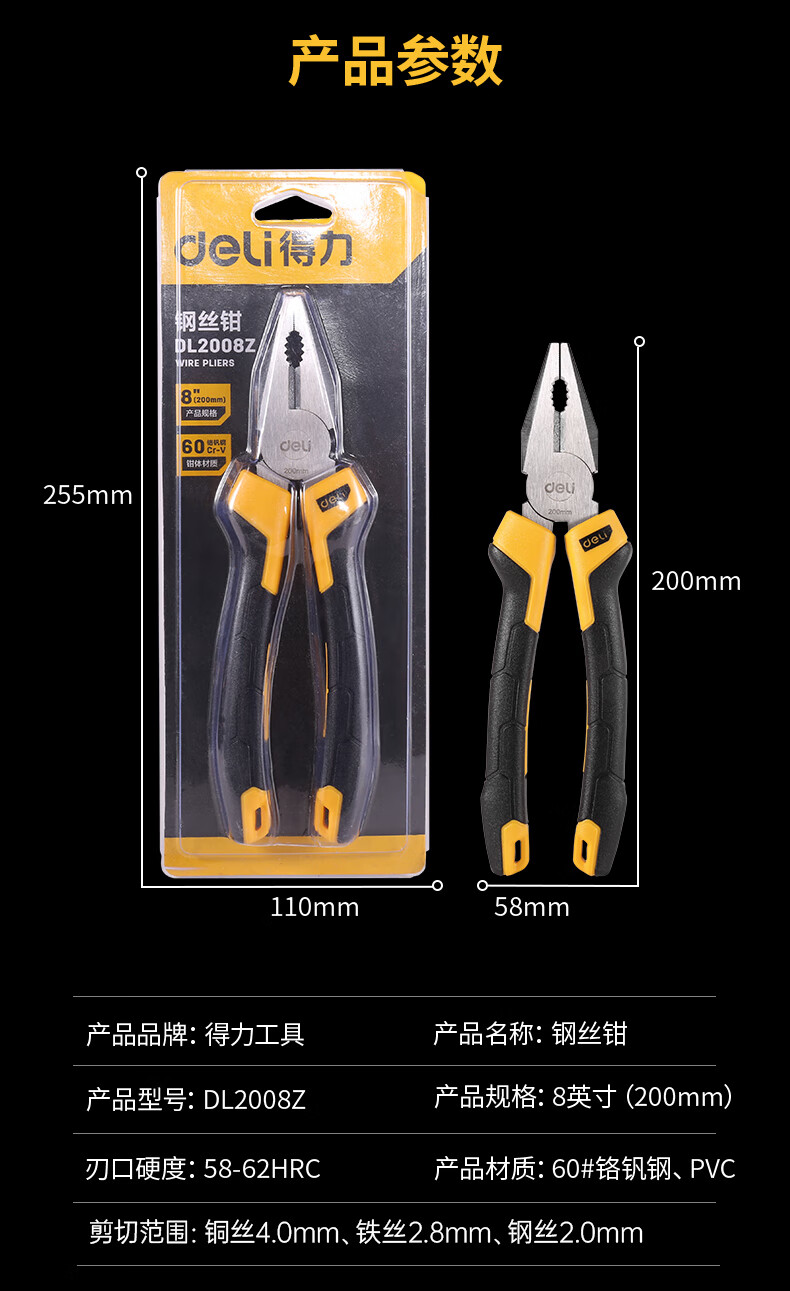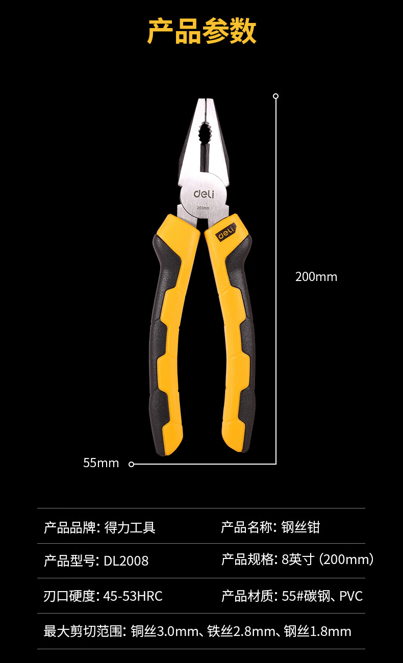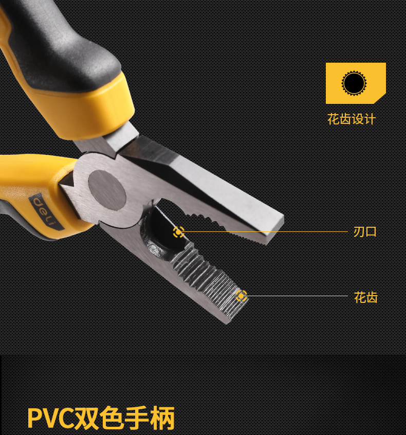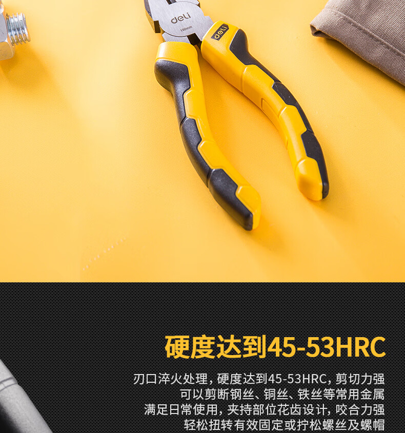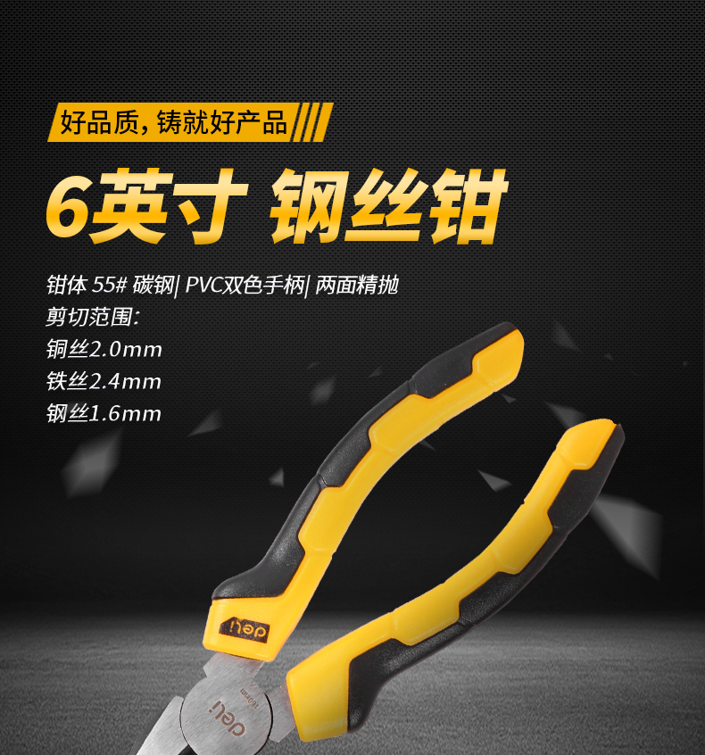 得力(deli) 雙色膠柄鋼絲鉗老虎鉗6英寸 DL2006