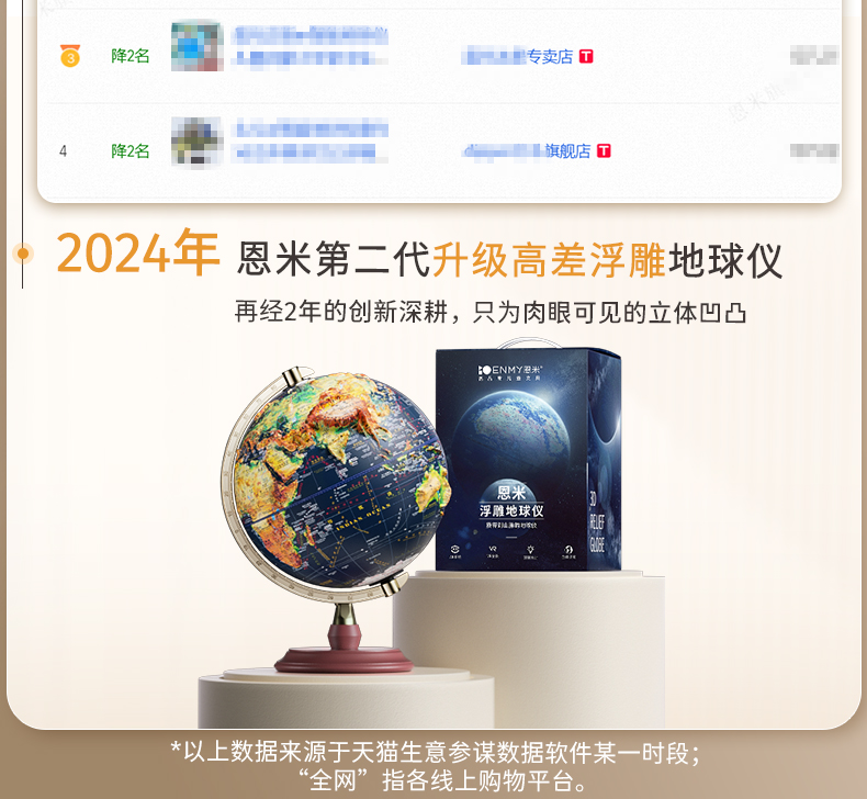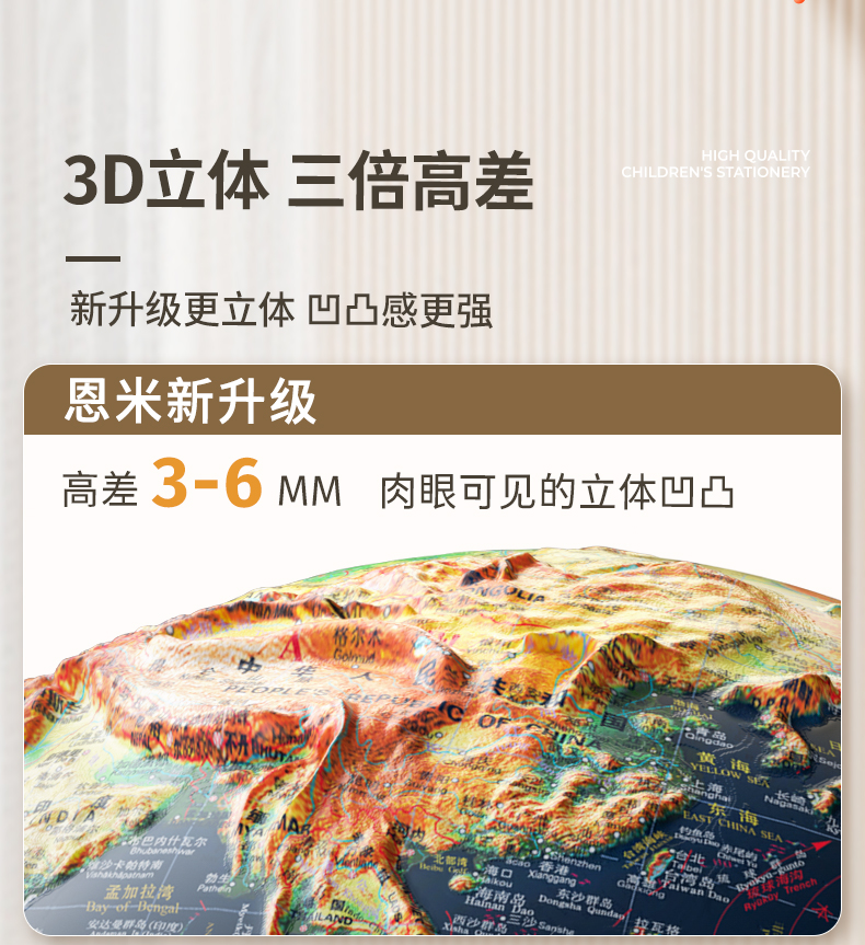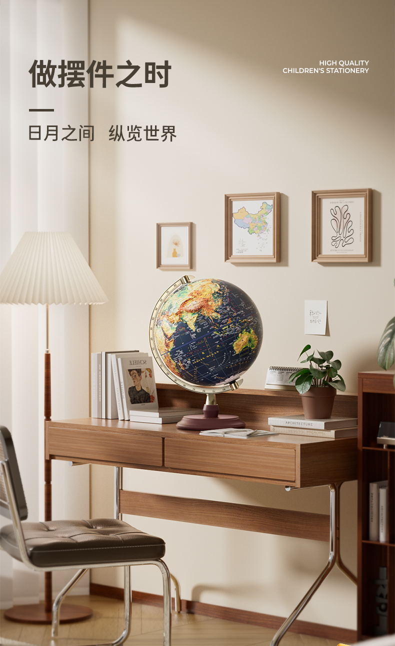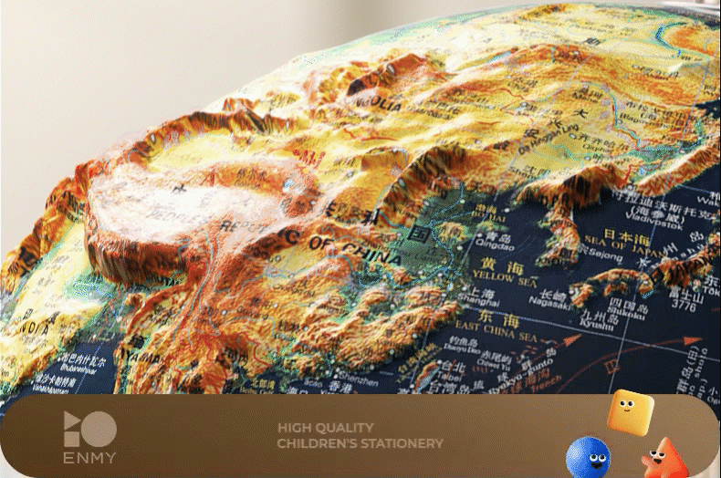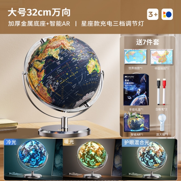 恩米科技YSE33-金屬底座升級高差浮雕地球儀-32cm-電鍍銀萬向刻度-三檔星座燈帶AR-禮盒裝