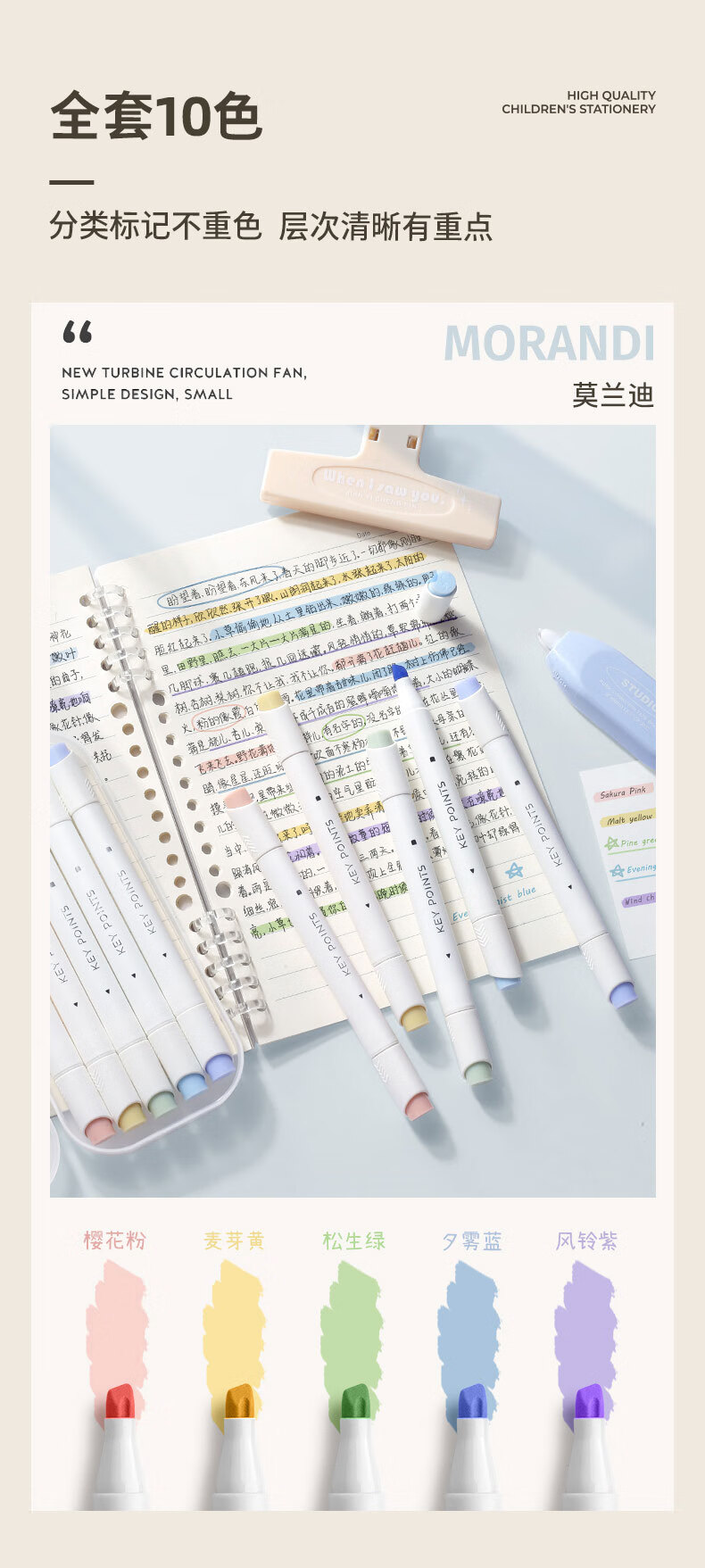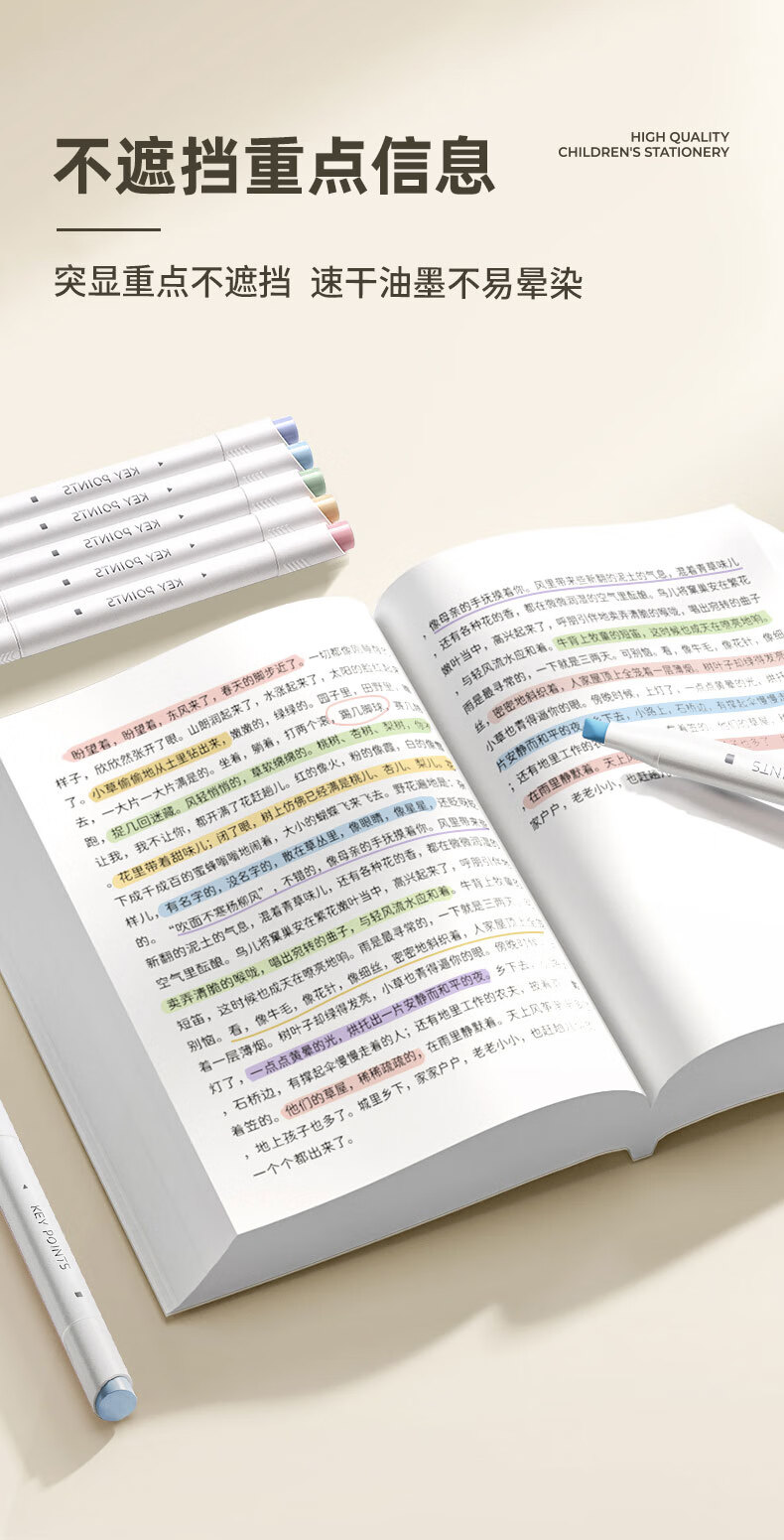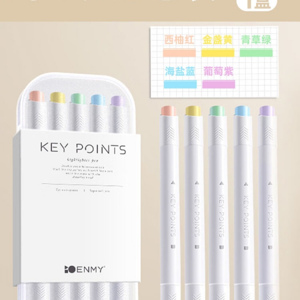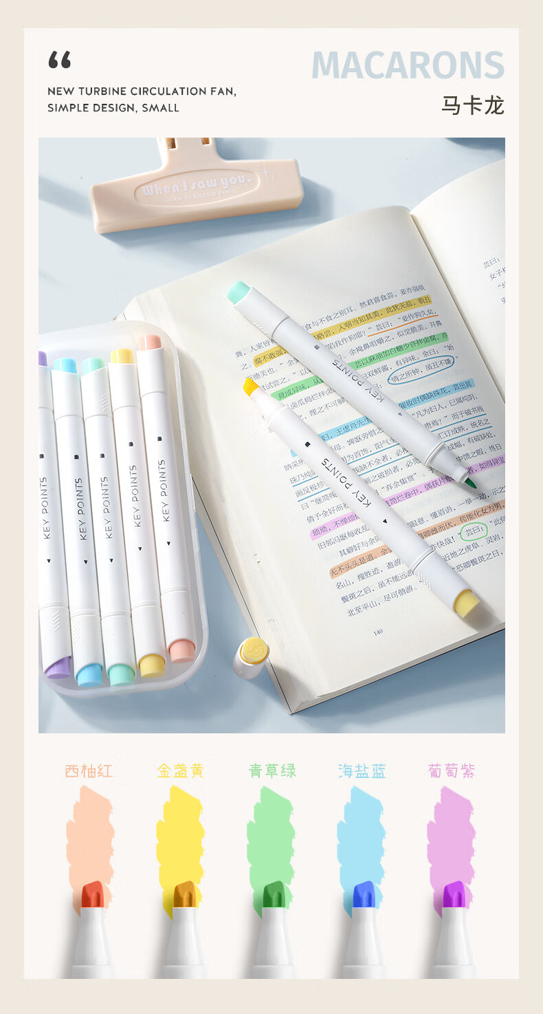 簡繁 5色莫蘭迪圓桿熒光筆套裝 新型軟頭彩色水性記號筆學生課堂重點標記筆大容量雙頭手賬筆 開學文具禮物