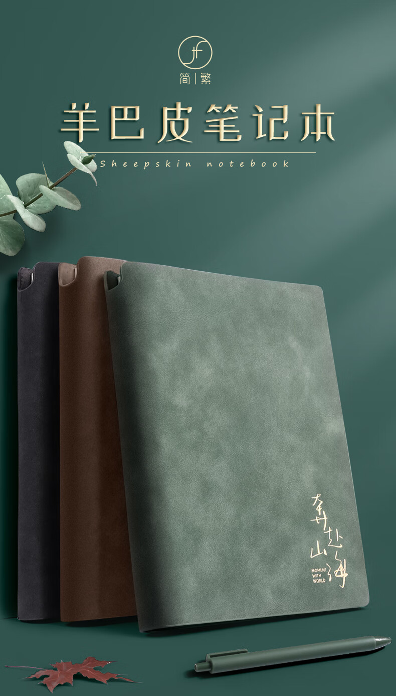 簡繁 A5/300頁羊巴皮筆記本本子 復古加厚記事本軟面皮面本 商務辦公會議記錄本日記本