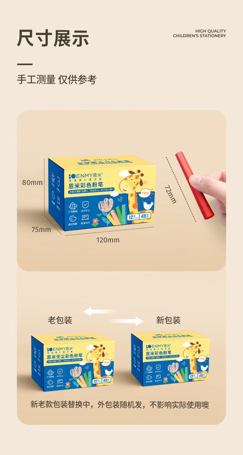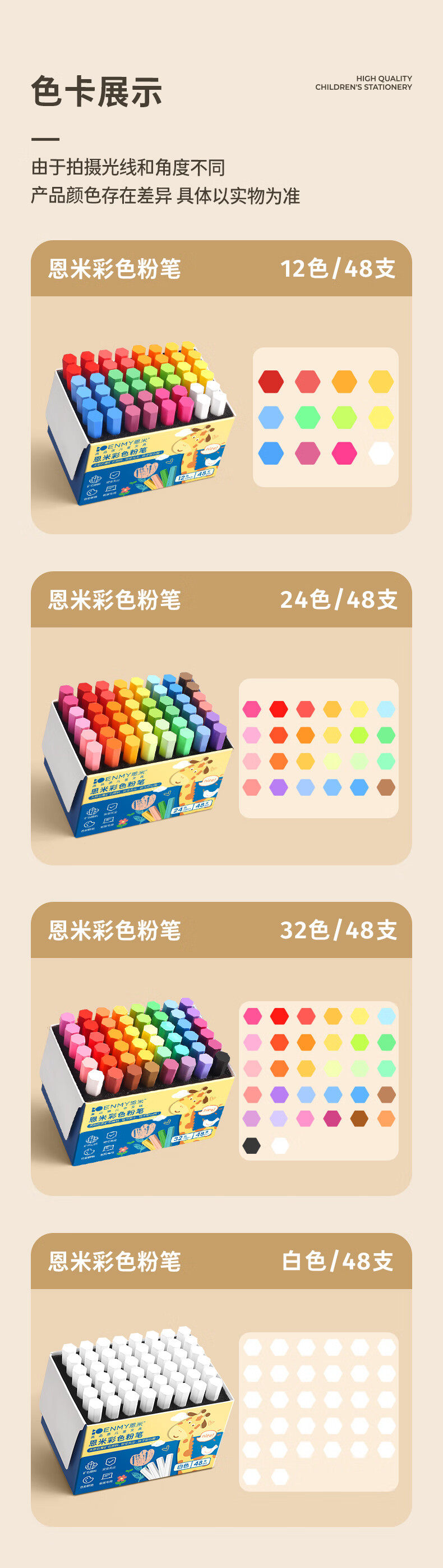 恩米科技YSF02-無塵彩色粉筆-【12色】48支/盒